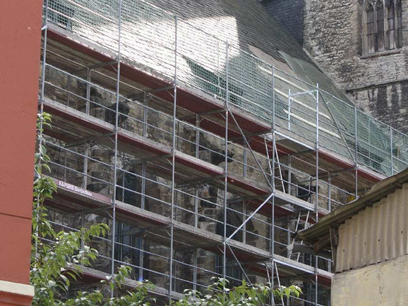 Die Bauarbeiten in den Außenbereichen haben begonnen. Die Gerüstbauarbeiten sind nahezu abgeschlossen.